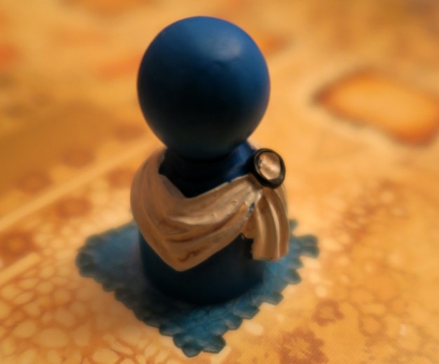 Answer:  When it’s not a Hans im Glück Meeple, apparently.  The term Meeple was allegedly coined nearly quarter of a century ago by Alison Hansel while paying the tile laying game, Carcassonne.  It was a conjunction of “my” and “people” and was used to refer to the characteristic wooden people-shaped pieces.  Since then it has been modified and the suffix “-eeple” has now come to mean game token (usually one that is wooden and shaped).