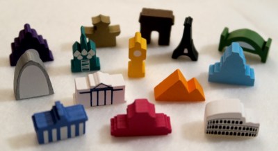 In contrast, the Forest of Sameness can only hold one type/colour of dinosaur, but also scores more the higher the occupancy. The Prairie of Love needs pairs of dinosaurs of the same type, each of which score five points, while the Woody Trio will score seven points if it contains precisely three dinosaurs at the end of the game (otherwise it scores nothing). The King of the Jungle and the Solitary Island only hold one dinosaur each, but the King of the Jungle scores if nobody else has more of that type of dinosaur, while the Solitary Island only scores if it contains the only dinosaur of that type in the Park.